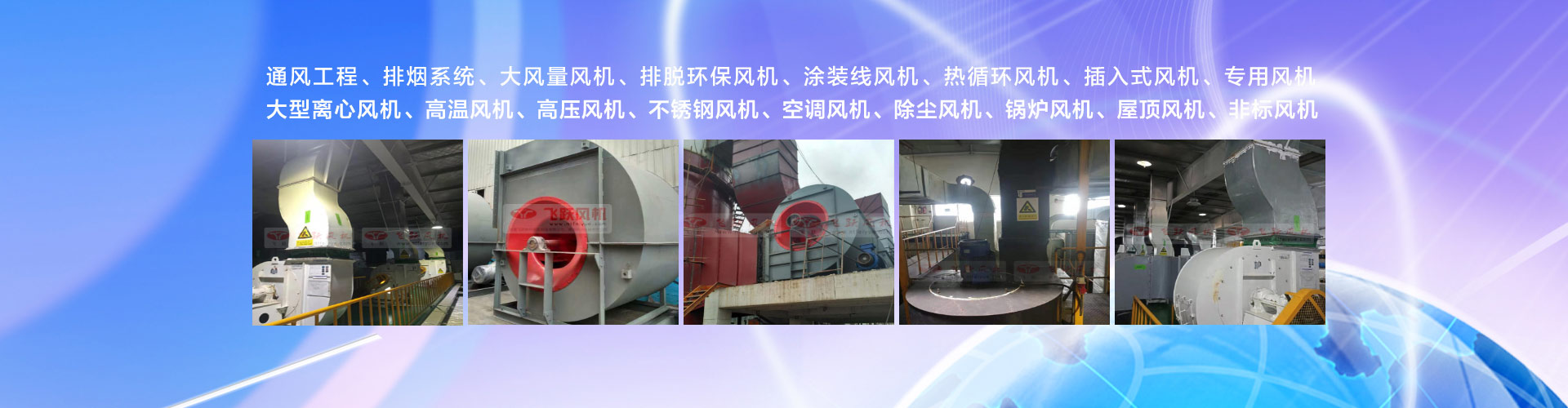 主要產(chǎn)品有:高溫風(fēng)機(jī)、高壓風(fēng)機(jī)、熱循環(huán)風(fēng)機(jī)、鍋爐風(fēng)機(jī)、除塵風(fēng)機(jī)、不銹鋼風(fēng)機(jī)、輸送風(fēng)機(jī)、屋頂風(fēng)機(jī)、紡織風(fēng)機(jī)、空調(diào)風(fēng)機(jī)、專(zhuān)用風(fēng)機(jī),非標(biāo)風(fēng)機(jī)等品種齊全。“精特靈”系列風(fēng)機(jī)產(chǎn)品,以優(yōu)良的性能,卓越的品質(zhì)獲得了廣大用戶的廣泛好評(píng)。